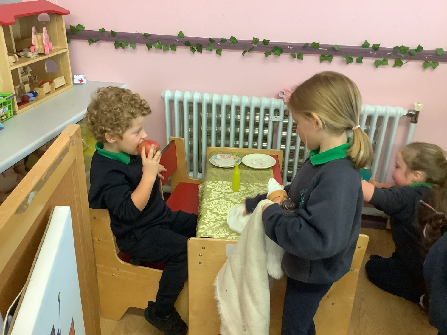 P1/2 are loving their outdoor play sessions and getting their wellies and puddle suits on. They are learning to work together, share, use their imagination, enhance their gross motor skills and develop their independence and vocabulary.